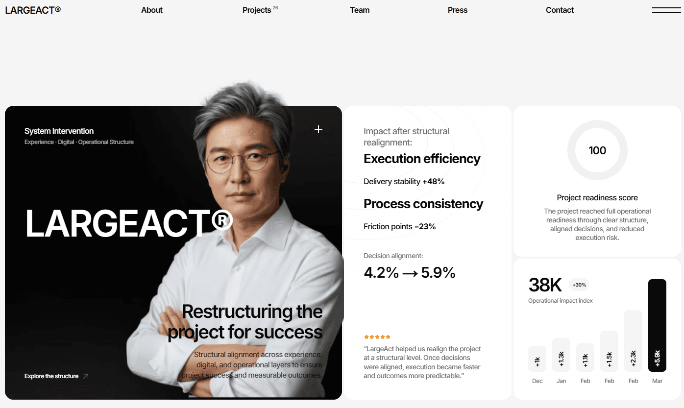 LARGEACT.com is an AI-driven creative and digital execution platform focused on transforming artificial intelligence into scalable brand assets and commercial-ready outputs. The project includes full website architecture, brand positioning, UX/UI structure, and strategic messaging — designed to establish LARGEACT as a next-generation AI creative infrastructure. From AI-powered content systems to digital branding frameworks, LARGEACT.com bridges automation, design, and performance marketing into one structured ecosystem. The goal is not simply showcasing AI creativity, but operationalizing it into measurable business value. This project represents the intersection of AI technology, digital branding, and scalable web systems.